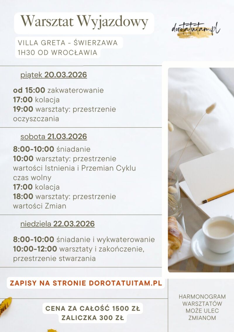 Serdecznie zapraszam na wyjazdowe warsztaty „Wartości Cyklu i Wartości Zmian”.